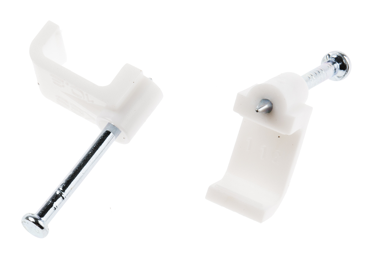 This is PE White Rectangular Cable Clip manufactured by RS Pro. The manufacturer part number is 233-607. It has a decent white colour. The product is made from highly stable and reliable pe. Its accurate length is 17mm. It includes a rectangular cable clip style cable clamp/clip . Furthermore, the product is 7.9 mm wide. The product comes in 7.6mm depth. Its dimensions L x W x D are about 7.9 x 10.2 x 8mm . Where they allow nail affixing mechanism.