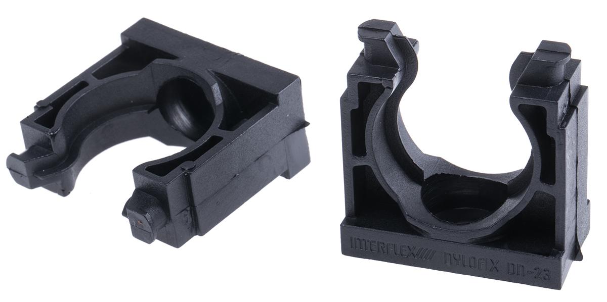 This is Cable Conduit Support Black Bolt Nylon Conduit Clip 23mm Max. Bundle manufactured by Nylofix. The manufacturer part number is SDN-23N. It has a decent black colour. The product is made from highly stable and reliable nylon 66. Its accurate length is 40mm. It includes a conduit clip style cable clamp/clip . Furthermore, the product is 20 mm wide. The product comes in 41mm depth. Its dimensions L x W x D are about 40 x 20 x 41mm . The bundle has a maximum diameter of 23mm. Where they allow bolt affixing mechanism.