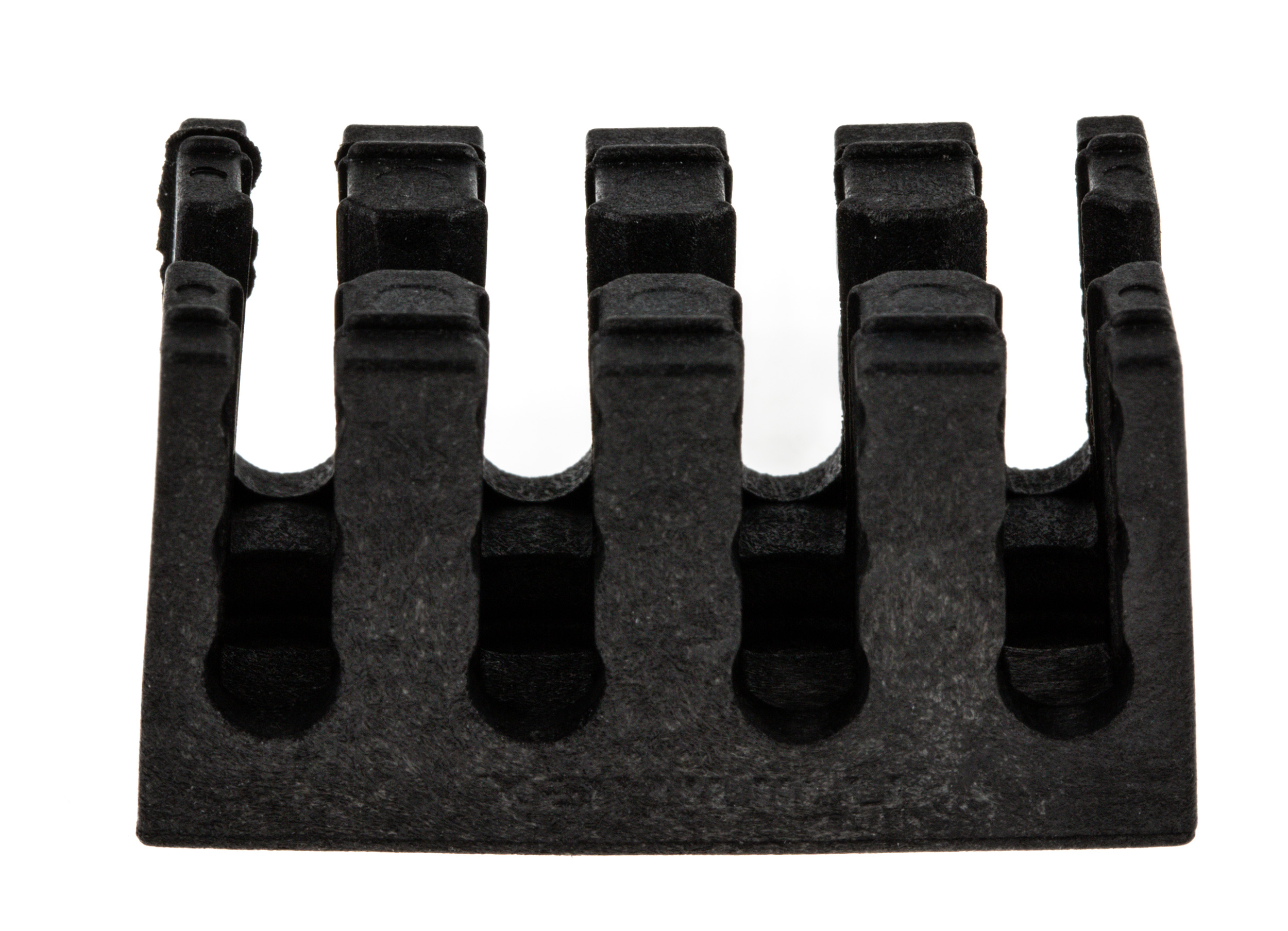 This is Black Cable Retainer 4 Apertures 40 x 25mm manufactured by RS Pro. The manufacturer part number is 229-3989. It has a decent black colour. The product is made from highly stable and reliable nylon 66. It has 4 included apertures . It includes a cable tie style cable clamp/clip . Furthermore, the product is 25 mm wide. Its accurate length is 40mm. Its dimensions L x W x D are about 40 x 25mm .