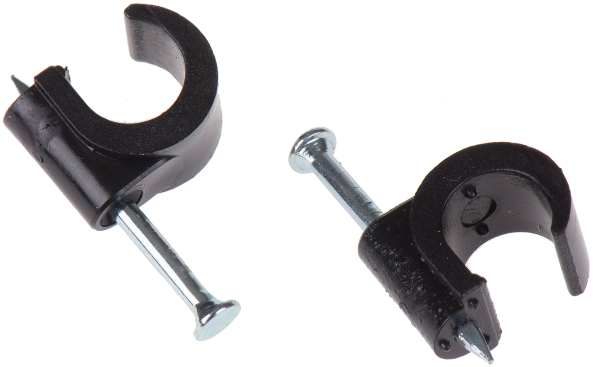 This is PE Black TV Cable Clip 8mm manufactured by RS Pro. The manufacturer part number is 233-433. It has a decent black colour. The product is made from highly stable and reliable pe. Its accurate length is 9.9mm. It includes a rounded cable tie style cable clamp/clip . Furthermore, the product is 5.6 mm wide. The product comes in 10.9mm depth. Its dimensions L x W x D are about 9.9 x 26.6 x 12.9mm . The bundle has a maximum diameter of 8mm. Where they allow nail affixing mechanism.