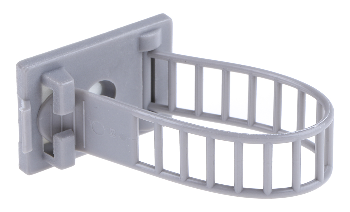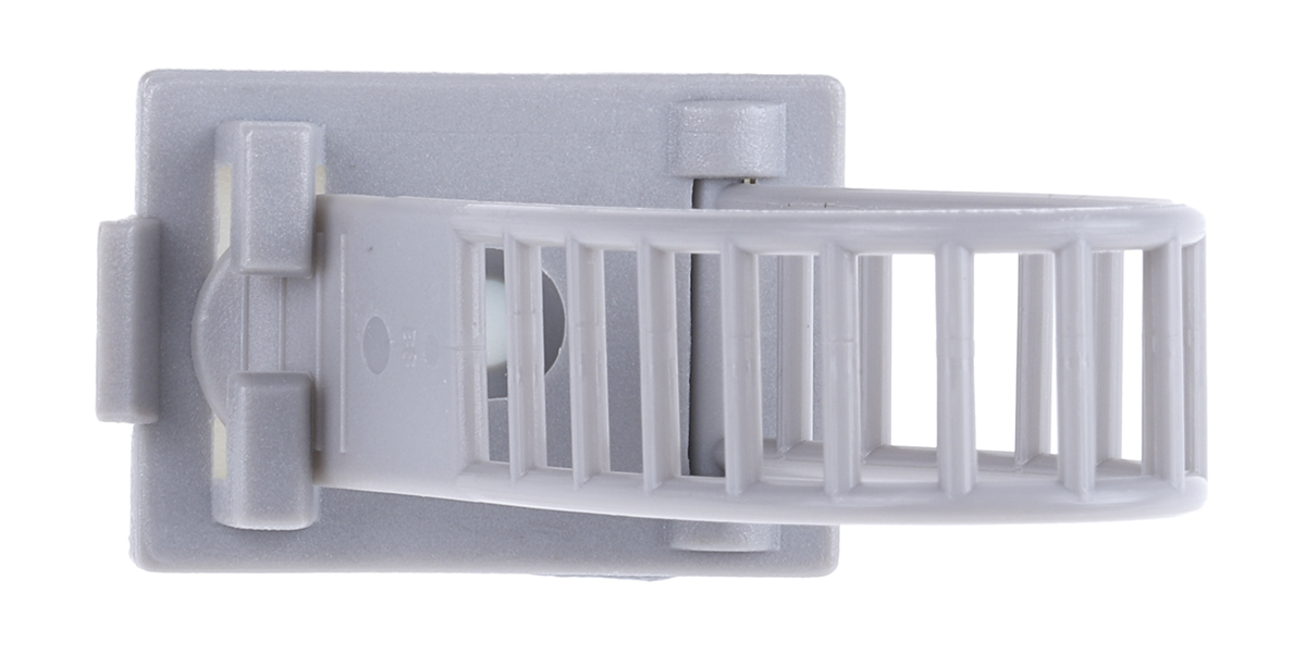 This is Cable Clip Grey Self Adhesive Nylon Adjustable Clamp 22mm Max. Bundle manufactured by RS Pro. The manufacturer part number is 404-449. It has a decent grey colour. The product is made from highly stable and reliable nylon 66. Its accurate length is 30.5mm. It includes a adjustable fastener style cable clamp/clip . Furthermore, the product is 21 mm wide. The product comes in 90mm depth. Its dimensions L x W x D are about 30.5 x 21 x 90mm . The bundle has a maximum diameter of 22mm. Where they allow self adhesive affixing mechanism.
