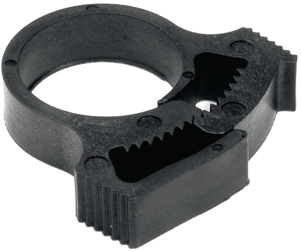 This is Black Clip 23.6mm Max. Bundle manufactured by HellermannTyton. The manufacturer part number is 190-00258 SNP18A-PA66GF13-BK. The bundle has a maximum diameter of 23.6mm. It has a decent black colour. It includes a hose clamp style cable clamp/clip . Where they allow plug in affixing mechanism.