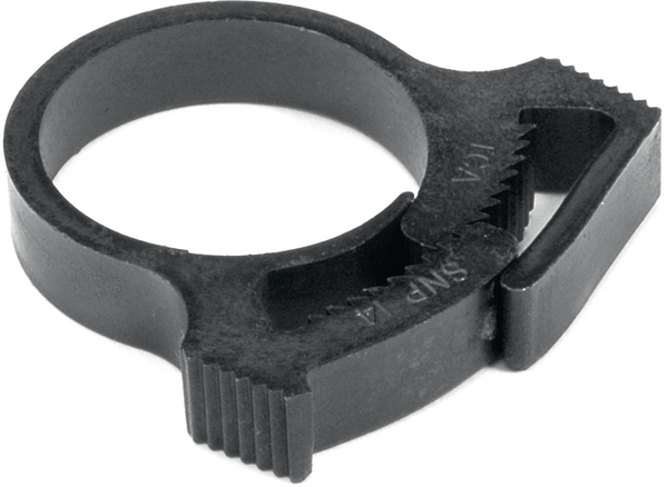 This is Black Clip 11.7mm Max. Bundle manufactured by HellermannTyton. The manufacturer part number is 192-10040 SNP4-PA66GF13-BK. The bundle has a maximum diameter of 11.7mm. It has a decent black colour. Where they allow plug in affixing mechanism. It includes a hose clamp style cable clamp/clip .