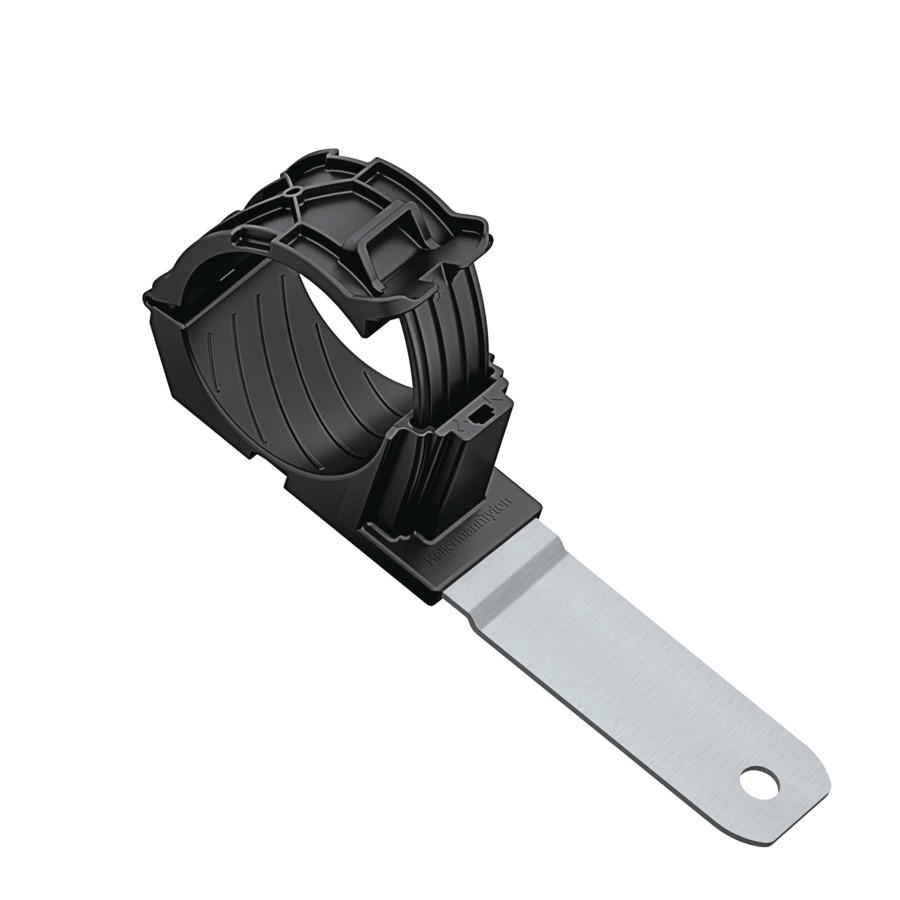 This is Black Polyamide Ratchet P Clamp 51mm Max. Bundle manufactured by HellermannTyton. The manufacturer part number is 151-01507 RCD180LM10-PA66HIRHSUV/ST/ZN-BK. The bundle has a maximum diameter of 51mm. It has a decent black colour. The product is made from highly stable and reliable polyamide. It includes a ratcheting p-clamp style cable clamp/clip .