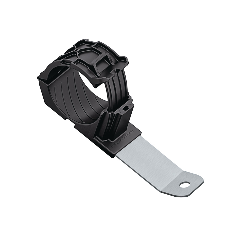 This is Black Polyamide Ratchet P Clamp 51mm Max. Bundle manufactured by HellermannTyton. The manufacturer part number is 151-01516 RCD30LM10-PA66HIRHSUV/ST/ZN-BK. The bundle has a maximum diameter of 51mm. It has a decent black colour. The product is made from highly stable and reliable polyamide. It includes a ratcheting p-clamp style cable clamp/clip .