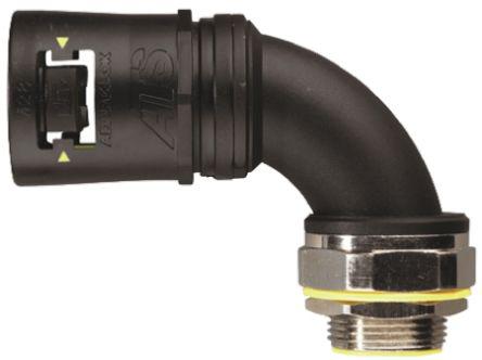 This is 90° Elbow Cable Conduit Fitting Nylon 66 Black 28mm nominal size M25 manufactured by Adaptaflex. The manufacturer part number is AT28/M25/CS90/BLY. The product is made from highly stable and reliable nylon 66. It has a decent black colour. This 90° elbow tool is easy to use with versatile applications in various settings. It has a typical thread size of m25. It has about 28mm nominal size . Whereas, the minimum operating temperature of the product is -50 (static applications) °c, -45 (moving applications) °c. It has a maximum operating temperature of +120 (moving applications) °c, +120 (static applications) °c.