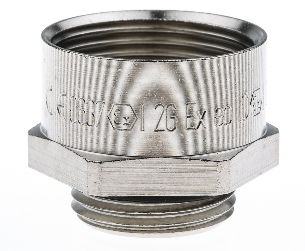 This is Cable Gland Adapter Enlarger Grey Nickel Plated Brass IP68 M20 → M25 manufactured by Lapp. The manufacturer part number is 52104582. It has an exterior thread size of m20 . The product is certified with atex hazardous area certification. The product has a flame retardant, halogen free fire behaviour. The product complies with all safety standards, such as ce. It is IP rated with ip68. The product skindicht, is a highly preferred choice for users. It has a decent grey colour. The product is made from highly stable and reliable nickel plated brass. It has a typical thread size of m20 → m25. It has a maximum operating temperature of +90°c. It comes in enlager configuration. Whereas, the minimum operating temperature of the product is -30°c. With m25 interior thread size .