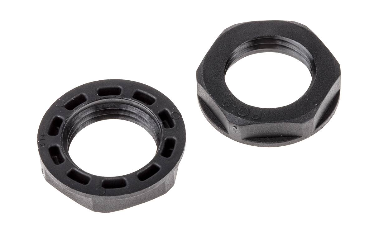 This is Black Nylon 66 Cable Gland Locknut PG9 Thread IP68 manufactured by RS Pro. The manufacturer part number is 822-9717. It is IP rated with ip68. It has a decent black colour. The product is made from highly stable and reliable nylon 66. It has a typical thread size of pg9.