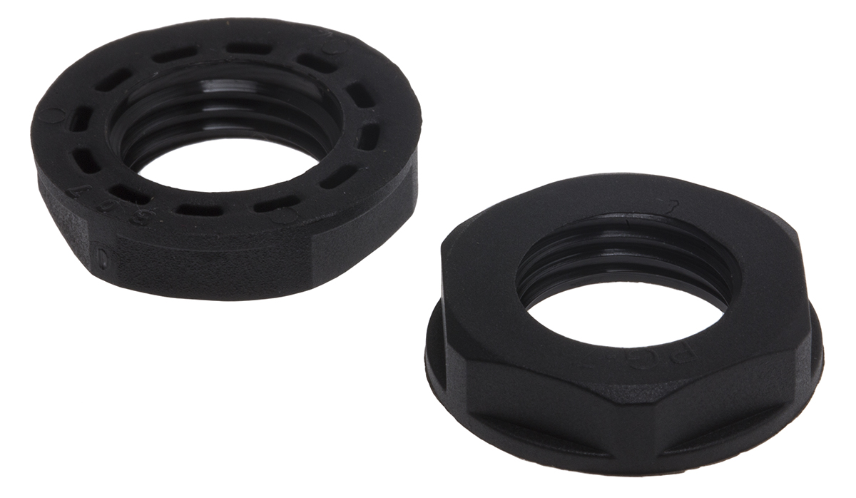 This is Black Nylon 66 Cable Gland Locknut PG7 Thread IP68 manufactured by RS Pro. The manufacturer part number is 822-9713. It is IP rated with ip68. It has a decent black colour. The product is made from highly stable and reliable nylon 66. It has a typical thread size of pg7.