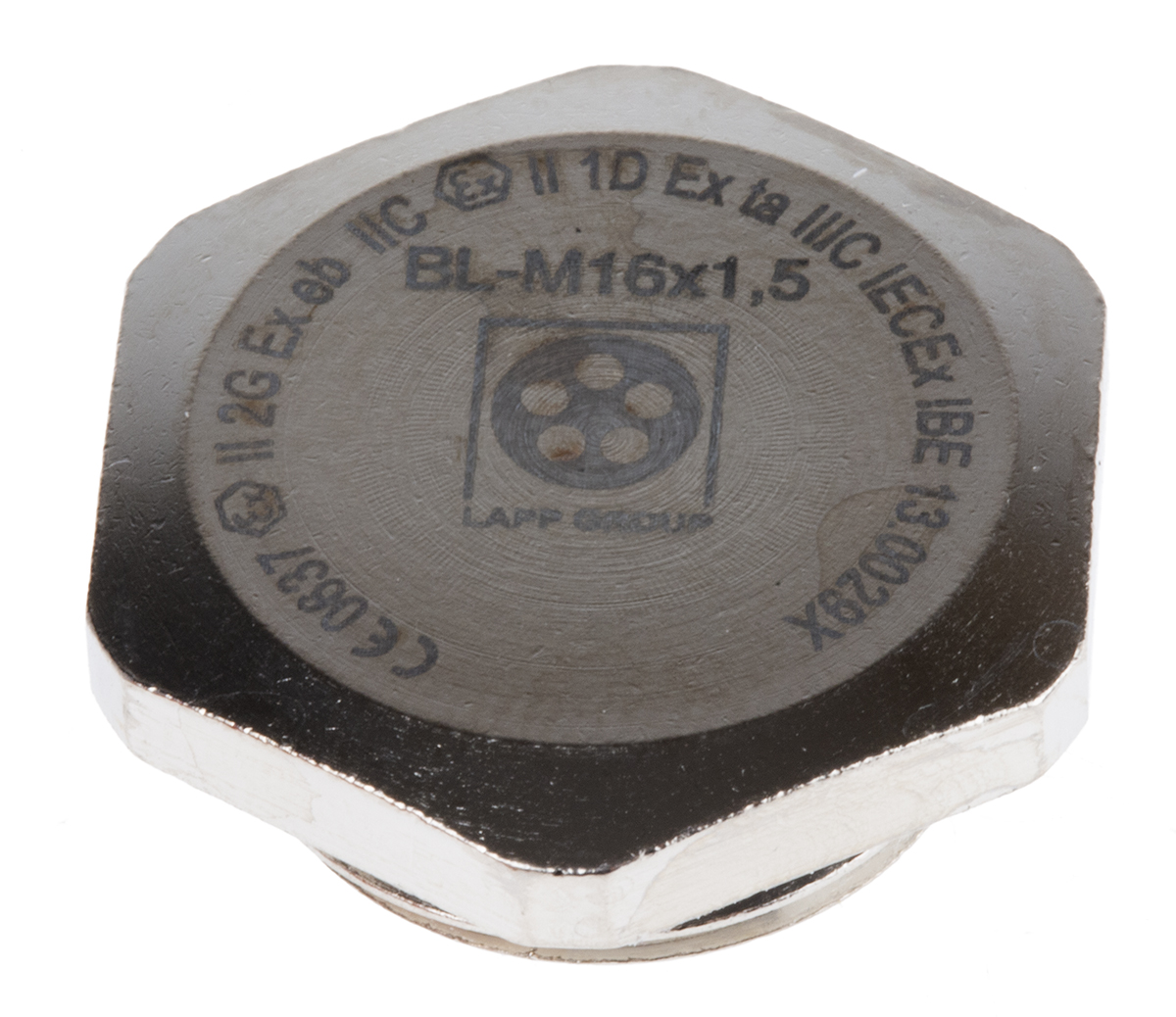 This is M16 ATEX Threaded Blanking Plug Nickel Plated Brass IP68 manufactured by Lapp. The manufacturer part number is 52103113. Its diameter is 22mm. The product is certified with atex hazardous area certification. The product complies with all safety standards, such as iec. It is IP rated with ip68. The product 5210, is a highly preferred choice for users. The product is made from highly stable and reliable nickel plated brass. The plug is a highly reliable blanking with long service life. It has a typical thread size of m16. Whereas, the minimum operating temperature of the product is -30°c. The product is highly suitable for cable screw gland. It has a maximum operating temperature of +90°c. It comes as a threaded product.