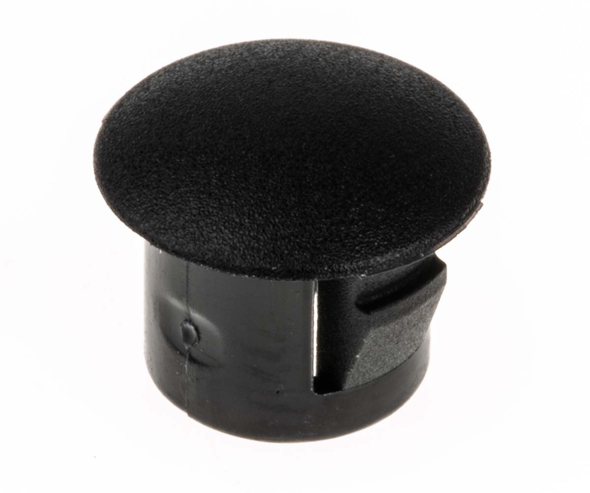 This is Black Unthreaded Blanking Plug Nylon 66 7.9mm manufactured by RS Pro. The manufacturer part number is 865-9798. Its diameter is 10.3mm. The product complies with all safety standards, such as ul 94v-2. The product 86597, is a highly preferred choice for users. It has a decent black colour. The product is made from highly stable and reliable nylon 66. The plug is a highly reliable blanking with long service life. The product is highly suitable for chassis thickness under 3.2 mm. Has a hole diameter of 7.9mm. It comes as a unthreaded product.