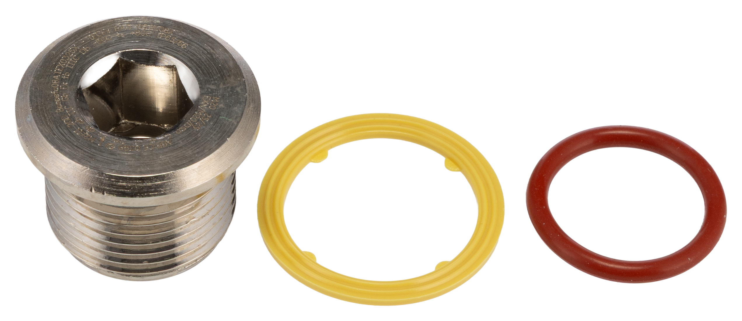 This is Stopping Plug M20 Nickel Plated Brass Threaded manufactured by Thomas & Betts. The manufacturer part number is 7TCA297140R0092. The product is certified with atex hazardous area certification. It is IP rated with ip66. The product glands, is a highly preferred choice for users. The product is made from highly stable and reliable nickel plated brass. The plug is a highly reliable stopping with long service life. It has a typical thread size of m20. It comes as a threaded product.