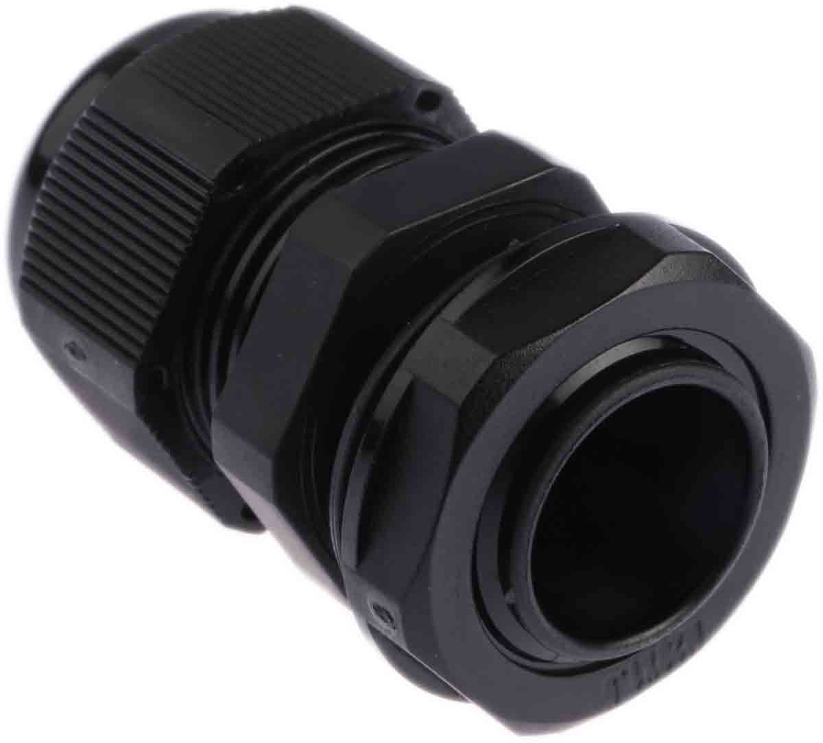 This is M20 Black Nylon IP68 Cable Gland With Locknut manufactured by HellermannTyton. The manufacturer part number is NGM20-BLK. The product complies with all safety standards, such as rohs compliant, ul 94 v-2. The minimum cable diameter is 10mm. It is IP rated with ip68. The product ngm, is a highly preferred choice for users. It has a decent black colour. The product is made from highly stable and reliable nylon 66. It has a typical thread size of m20. The product has -40 → +100 °c of operating temperature range. Whereas, the minimum operating temperature of the product is -40°c. While the maximum dimeter of the cable is 14mm. Locknut included yes . It has a maximum operating temperature of +100°c.
