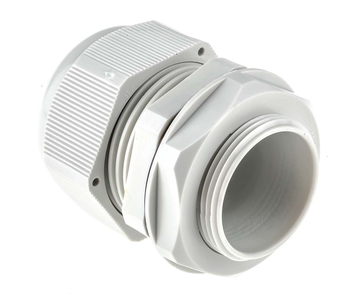 This is M32 Grey Nylon IP68 Cable Gland With Locknut manufactured by RS Pro. The manufacturer part number is 822-9754. The product has a flame retardant, self-extinguishing fire behaviour. The product complies with all safety standards, such as ul 94 v-2. The minimum cable diameter is 18mm. It is IP rated with ip68. It has a decent grey colour. The product is made from highly stable and reliable nylon 66. It has a typical thread size of m32. While the maximum dimeter of the cable is 25mm. Locknut included yes . It has a maximum operating temperature of 85°c. Whereas, the minimum operating temperature of the product is -40°c. The product consists of 10 pieces.
