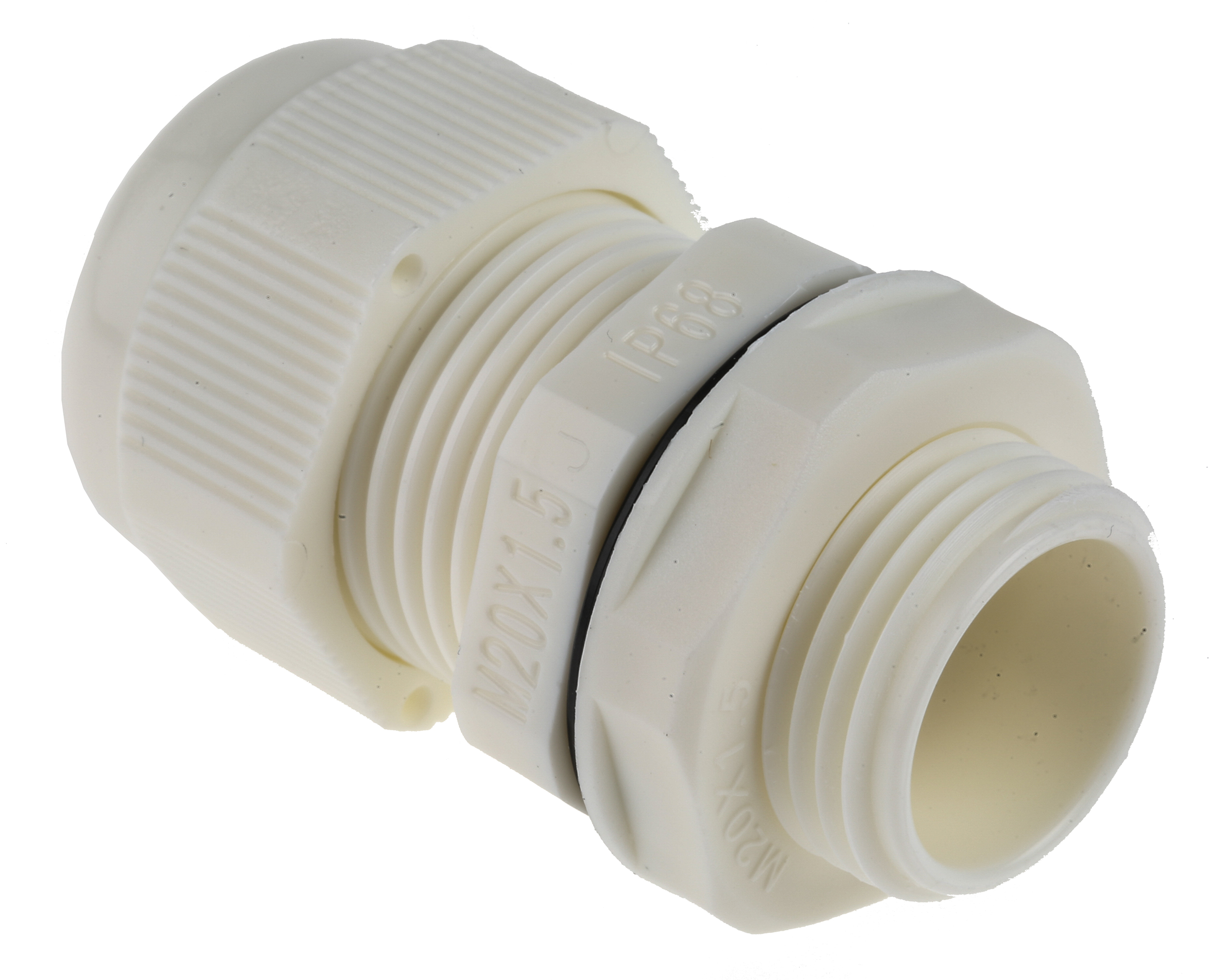 This is M20 White Nylon IP68 Cable Gland With Locknut manufactured by RS Pro. The manufacturer part number is 822-9776. The product has a flame retardant, self-extinguishing fire behaviour. The product complies with all safety standards, such as ul 94 v-2. The minimum cable diameter is 10mm. It is IP rated with ip68. It has a decent white colour. The product is made from highly stable and reliable nylon 66. It has a typical thread size of m20. While the maximum dimeter of the cable is 14mm. Locknut included yes . It has a maximum operating temperature of 85°c. Whereas, the minimum operating temperature of the product is -40°c. The product consists of 10 pieces.
