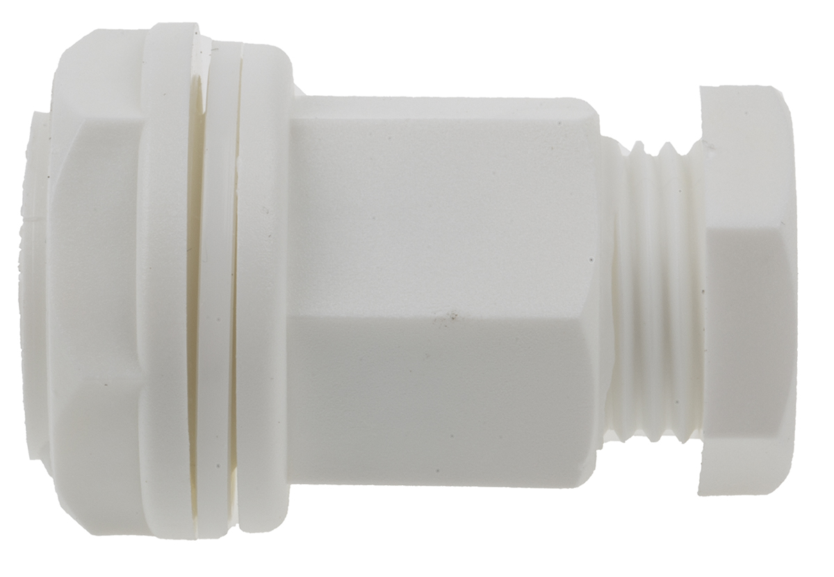 This is M20 White Plastic IP55 Cable Gland With Locknut manufactured by RS Pro. The manufacturer part number is 127-372. The product has a low smoke & fume (lsf) fire behaviour. The product complies with all safety standards, such as en 60423, ul 94 v-2. The minimum cable diameter is 4mm. It is IP rated with ip55. It has a decent white colour. The product is made from highly stable and reliable plastic. It has a typical thread size of m20. The product has -20 → +80 °c of operating temperature range. Whereas, the minimum operating temperature of the product is -20°c. While the maximum dimeter of the cable is 7mm. Locknut included yes . It has a maximum operating temperature of +80°c.