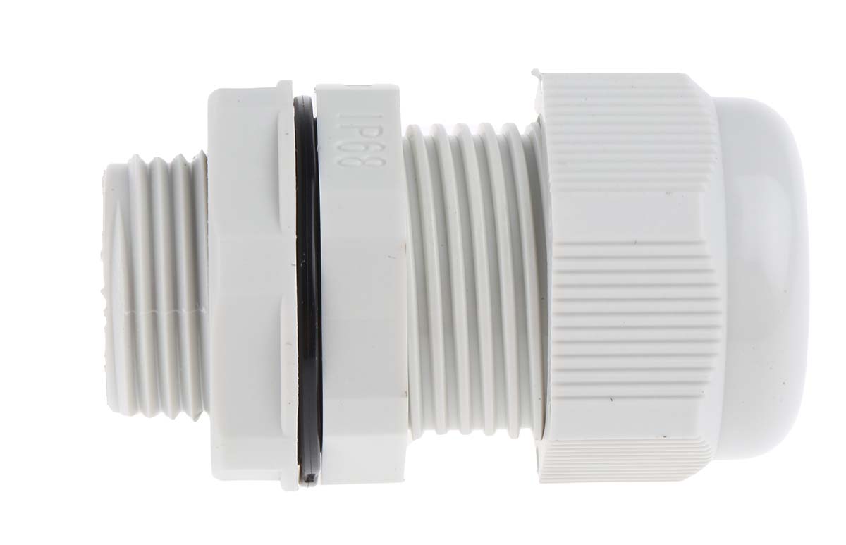 This is M20 Grey Nylon IP68 Cable Gland With Locknut manufactured by RS Pro. The manufacturer part number is 822-9741. The product has a flame retardant, self-extinguishing fire behaviour. The product complies with all safety standards, such as ul 94 v-2. The minimum cable diameter is 10mm. It is IP rated with ip68. It has a decent grey colour. The product is made from highly stable and reliable nylon 66. It has a typical thread size of m20. While the maximum dimeter of the cable is 14mm. Locknut included yes . It has a maximum operating temperature of 85°c. Whereas, the minimum operating temperature of the product is -40°c. The product consists of 10 pieces.
