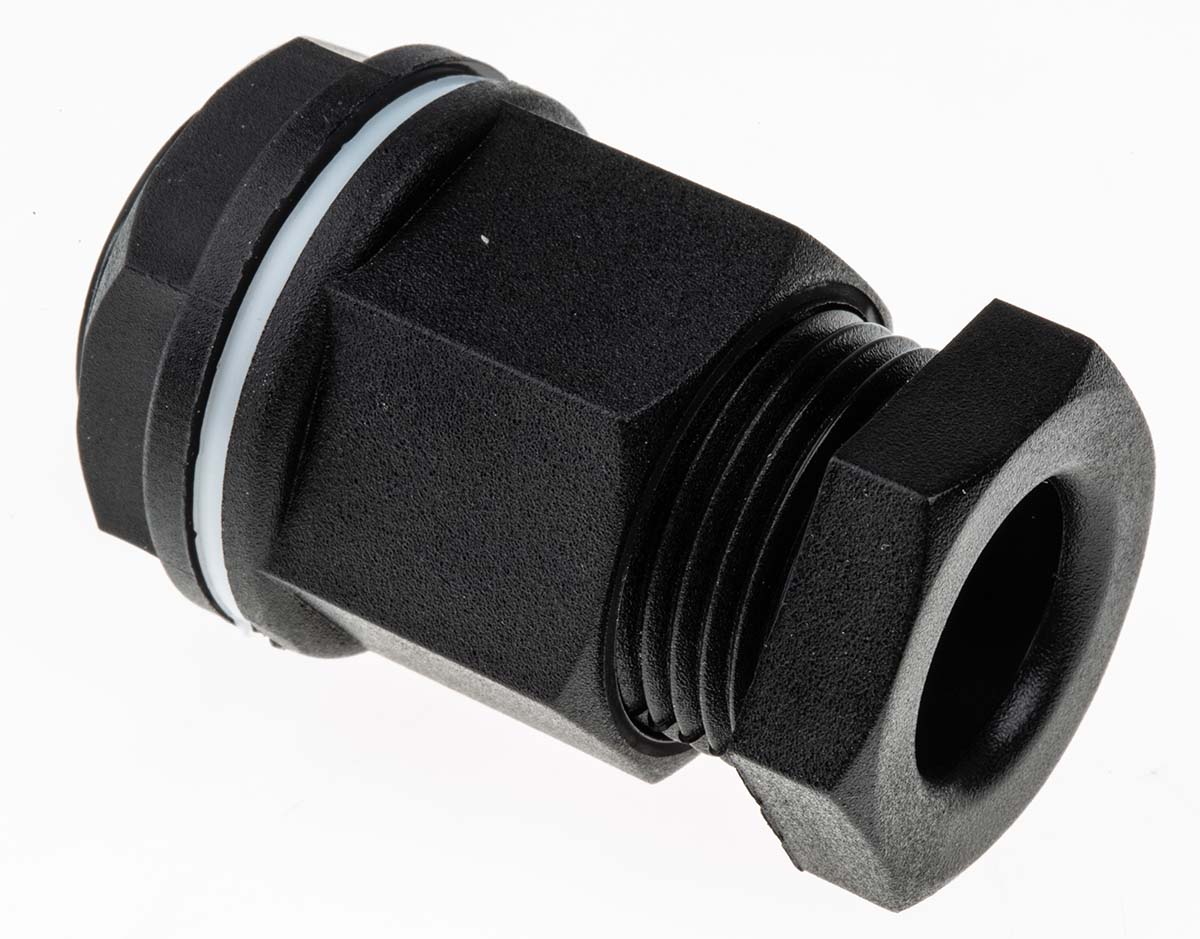 This is M20 Black Plastic IP55 Cable Gland With Locknut manufactured by RS Pro. The manufacturer part number is 127-215. The product has a low smoke & fume (lsf) fire behaviour. The product complies with all safety standards, such as en 60423, ul 94 v-2. The minimum cable diameter is 8mm. It is IP rated with ip55. It has a decent black colour. The product is made from highly stable and reliable plastic. It has a typical thread size of m20. The product has -20 → +80 °c of operating temperature range. Whereas, the minimum operating temperature of the product is -20°c. While the maximum dimeter of the cable is 13mm. Locknut included yes . It has a maximum operating temperature of +80°c.