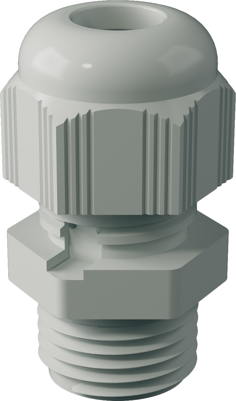 This is Light Grey Polyamide Cable Gland M12 Thread 4mm Min 7mm Max manufactured by Bopla. The manufacturer part number is 12004100 DAE-MBF 12. The minimum cable diameter is 4mm. It has a decent light grey colour. The product is made from highly stable and reliable polyamide. It has a typical thread size of m12. While the maximum dimeter of the cable is 7mm.