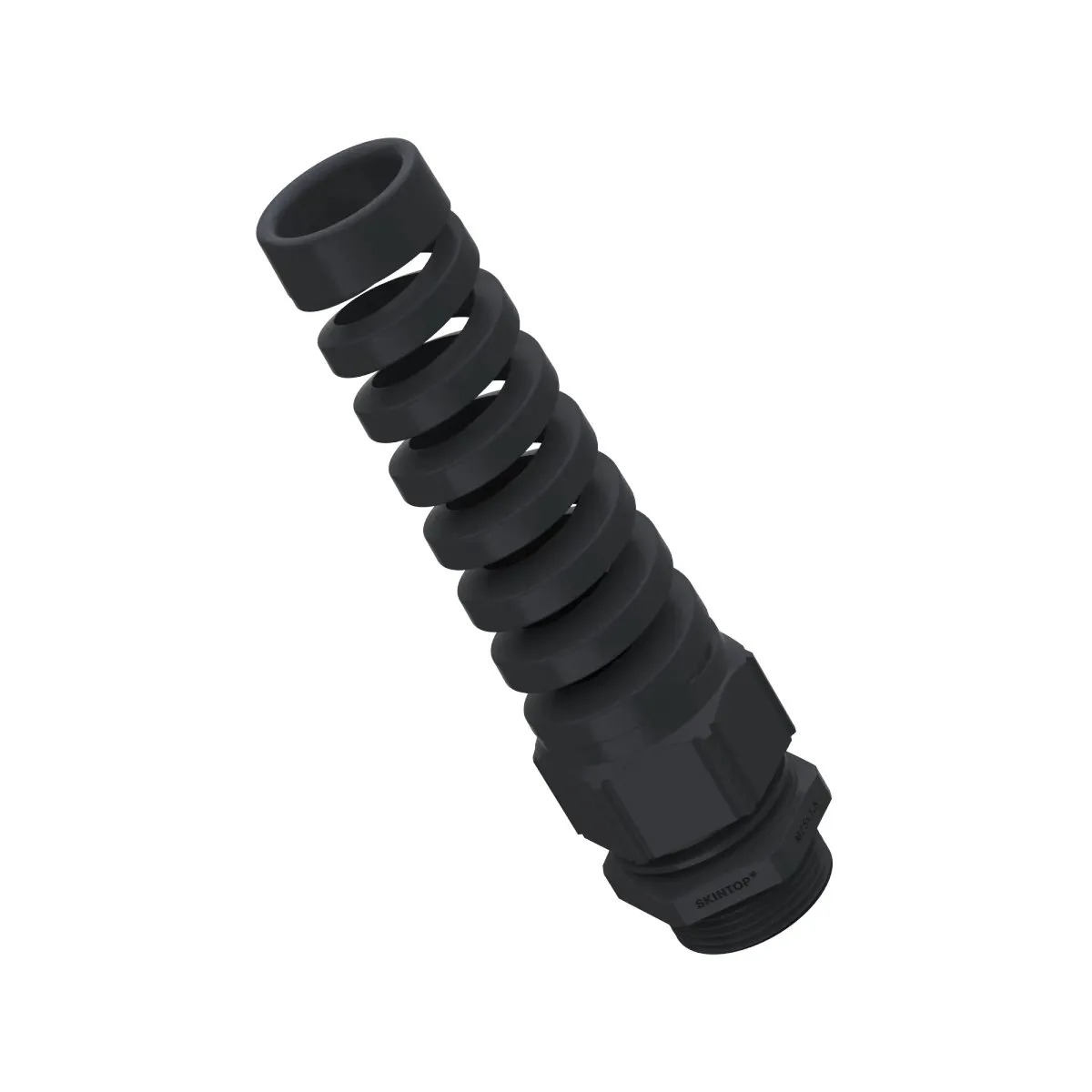 This is SKINTOP BS-M Series Black Polyamide Cable Gland M20 Thread 7mm Min 13mm Max IP68 manufactured by Lapp. The manufacturer part number is SKINTOP BS-M 20X1.5 RAL 9005 BK. The minimum cable diameter is 7mm. It is IP rated with ip68. The product skintop bs-m, is a highly preferred choice for users. It has a decent black colour. The product is made from highly stable and reliable polyamide. It has a typical thread size of m20. While the maximum dimeter of the cable is 13mm.