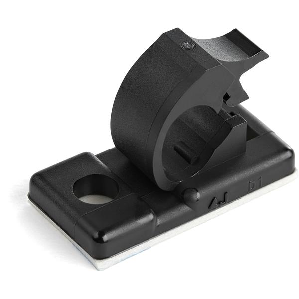 This is Cable Clip Nylon 0.5in L manufactured by StarTech.com. The manufacturer part number is CBMCC1. Furthermore, the product is 2.6 cm wide. It has a decent black colour. The product is made from highly stable and reliable nylon 66. Its accurate length is 1.3cm. Where they allow adhesive affixing mechanism.