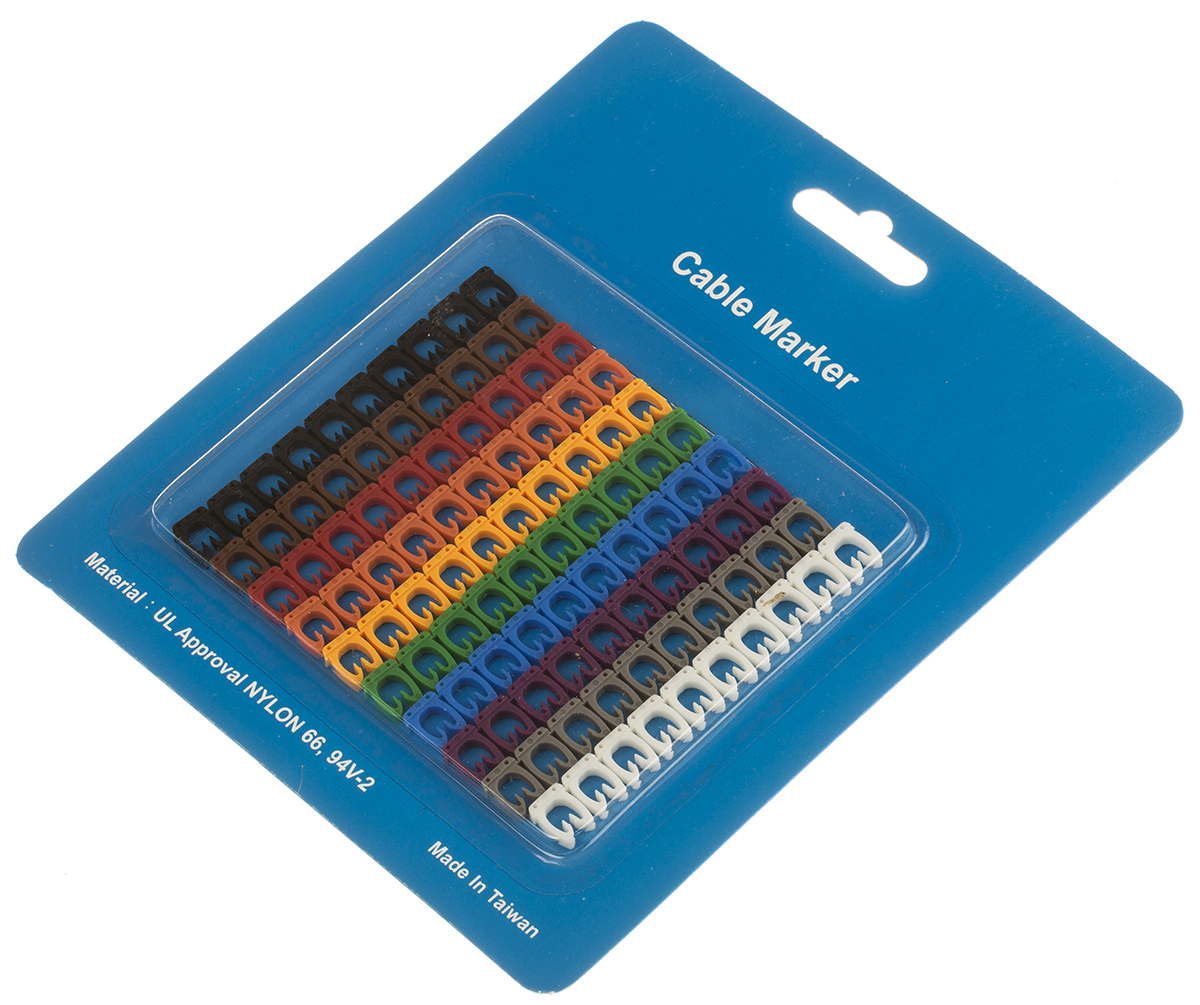 This is Clip On Cable Marker Pre-printed 0 → 9 Black Brown Green Grey Orange Red Violet White Yellow manufactured by RS Pro. The manufacturer part number is 812-1225. The product complies with all safety standards, such as rohs compliant, ul, ul 94 v-2. It has a printable feature no . It has a decent black, brown, green, grey, orange, red, violet, white, yellow colour. The product is made from highly stable and reliable nylon 66. Its accurate length is 2.9mm. Where they allow clip on affixing mechanism. Legend Information: 0 → 9. Available in 100 quantity.