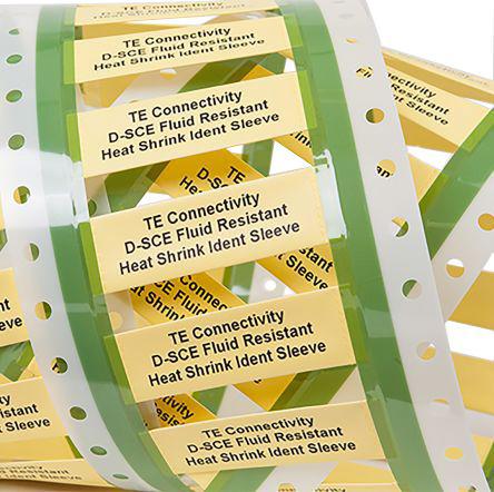 This is D-SCE Heat Shrink Cable Marker Yellow 9.29 → 21.59mm Dia. Range manufactured by TE Connectivity. The manufacturer part number is D-SCE-1K-25-50-4. The product complies with all safety standards, such as mil-std-202 method 215j, nff 00 608 category a, nff 00 608 category h, rw-2519, sae as81531 4.6.2, sae-ams-dtl-23053/6 class 1, ttds-017. The minimum cable diameter is 9.29mm. The product has -55 → +135 °c of operating temperature range. The product d-sce, is a highly preferred choice for users. It has a decent yellow colour. The product is made from highly stable and reliable polyolefin. Whereas, its overall cable diameter range is 9.29 → 21.59mm . Furthermore, the product is 90.18 mm wide. Its accurate length is 50mm. A bespoke product is highly resistant to fluid, oils. Whereas, the minimum operating temperature of the product is -55°c. While the maximum dimeter of the cable is 21.59mm. It has a maximum operating temperature of +135°c. Where they allow heat shrink affixing mechanism. Available in 1000 quantity.