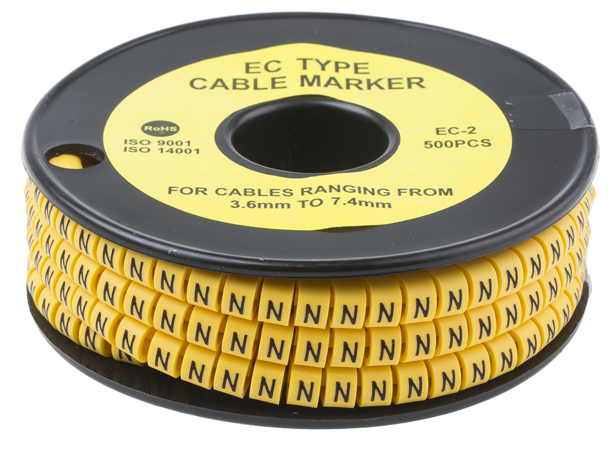 This is Slide On Cable Marker Pre-printed N Black on Yellow 3.6 → 7.4mm Dia. Range manufactured by RS Pro. The manufacturer part number is 812-1010. The product complies with all safety standards, such as rohs compliant. The minimum cable diameter is 3.6mm. The product has maximum of +85 °c of operating temperature range. It has a printable feature no . It has a decent black on yellow colour. The product is made from highly stable and reliable pvc. Whereas, its overall cable diameter range is 3.6 → 7.4mm . Its accurate length is 5mm. A bespoke product is highly resistant to greases, oils. Where they allow slide on affixing mechanism. While the maximum dimeter of the cable is 7.4mm. It has a maximum operating temperature of +85°c. Legend Information: n. Available in 500 quantity.