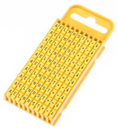 This is WIC Snap On Cable Marker Pre-printed -; +; A; E; Earth; L; N; R; S; T Yellow manufactured by HellermannTyton. The manufacturer part number is 561-05052. Whereas, the minimum operating temperature of the product is -40°c. The minimum cable diameter is 4.3mm. The product wic, is a highly preferred choice for users. It has a decent yellow colour. The product is made from highly stable and reliable nylon 66. Whereas, its overall cable diameter range is 4.3 → 5.3mm . Furthermore, the product is 8 mm wide. Its accurate length is 3mm. A bespoke product is highly resistant to vibrations. Where they allow snap on affixing mechanism. While the maximum dimeter of the cable is 5.3mm. It has a maximum operating temperature of +85°c. Legend Information: -; +; a; e; earth; l; n; r; s; t. Available in 100 quantity.