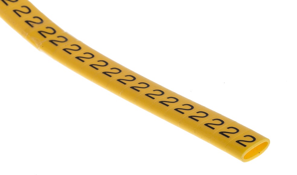 This is Slide On Cable Marker 2 Black on Yellow 3.5 → 7mm Dia. Range 500 markers manufactured by RS Pro. The manufacturer part number is 812-1073. The product complies with all safety standards, such as rohs compliant. The minimum cable diameter is 3.5mm. It has a printable feature no . It has a decent black on yellow colour. The product is made from highly stable and reliable pvc. Whereas, its overall cable diameter range is 3.5 → 7mm . Its accurate length is 5mm. A bespoke product is highly resistant to greases, oils. Where they allow slide on affixing mechanism. While the maximum dimeter of the cable is 7mm. Legend Information: 2. Available in 500 quantity.