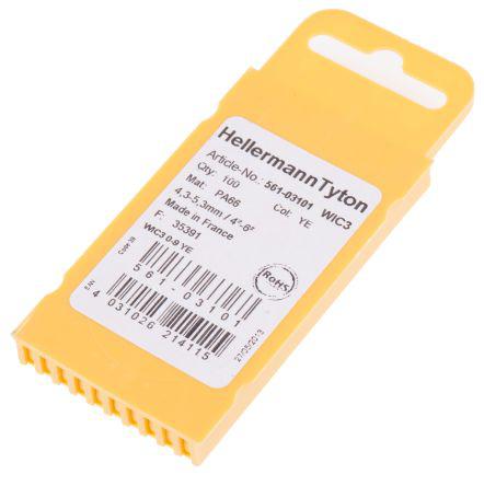 This is WIC Snap On Cable Marker 0 → 9 Yellow 4.3 → 5.3mm Dia. Range 100 markers manufactured by HellermannTyton. The manufacturer part number is 561-05051. Whereas, the minimum operating temperature of the product is -40°c. The minimum cable diameter is 4.3mm. The product wic, is a highly preferred choice for users. It has a decent yellow colour. The product is made from highly stable and reliable nylon 66. Whereas, its overall cable diameter range is 4.3 → 5.3mm . Furthermore, the product is 8 mm wide. Its accurate length is 3mm. A bespoke product is highly resistant to vibrations. Where they allow snap on affixing mechanism. While the maximum dimeter of the cable is 5.3mm. It has a maximum operating temperature of +85°c. Legend Information: 0 → 9. Available in 100 quantity.