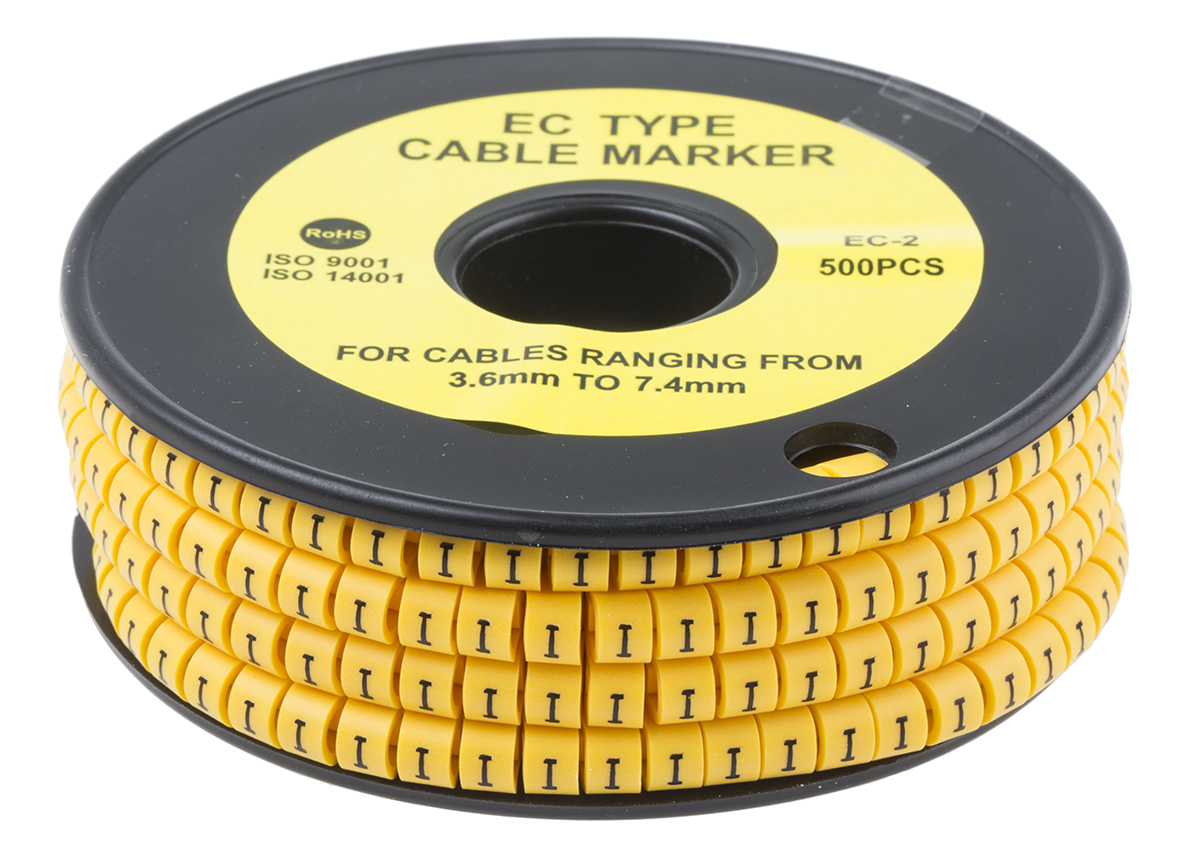 This is Slide On Cable Marker I Black on Yellow 3.6 → 7.4mm Dia. Range 500 markers manufactured by RS Pro. The manufacturer part number is 812-0997. The product complies with all safety standards, such as rohs compliant. The minimum cable diameter is 3.6mm. The product has maximum of +85 °c of operating temperature range. It has a printable feature no . It has a decent black on yellow colour. The product is made from highly stable and reliable pvc. Whereas, its overall cable diameter range is 3.6 → 7.4mm . Its accurate length is 5mm. A bespoke product is highly resistant to greases, oils. Where they allow slide on affixing mechanism. While the maximum dimeter of the cable is 7.4mm. It has a maximum operating temperature of +85°c. Legend Information: i. Available in 500 quantity.
