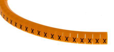This is Snap On Cable Marker Pre-printed X Black on Orange 4 → 5mm Dia. Range manufactured by RS Pro. The manufacturer part number is 812-1509. The product complies with all safety standards, such as rohs compliant, ul. The minimum cable diameter is 4mm. It has a decent black on orange colour. The product is made from highly stable and reliable nylon 6. Whereas, its overall cable diameter range is 4 → 5mm . Its accurate length is 4mm. Where they allow snap on affixing mechanism. While the maximum dimeter of the cable is 5mm. Legend Information: x. Available in 100 quantity.