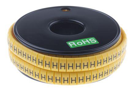 This is Slide On Cable Marker Pre-printed H Black on Yellow 3.5 → 7mm Dia. Range manufactured by RS Pro. The manufacturer part number is 812-1124. The product complies with all safety standards, such as rohs compliant. The minimum cable diameter is 3.5mm. It has a decent black on yellow colour. The product is made from highly stable and reliable pvc. Its accurate length is 5mm. A bespoke product is highly resistant to greases, oils. Where they allow slide on affixing mechanism. While the maximum dimeter of the cable is 7mm. Whereas, its overall cable diameter range is 3.5 → 7mm . Legend Information: h. Available in 500 quantity.