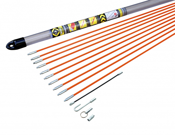 This is MightyRod 10m Cable Rod Set manufactured by CK. The manufacturer part number is T5410. The product is made from highly stable and reliable fibreglass/grp. With 10m maximum length . It has a/an rod set as routing type tool . It includes a/an 1 x 5 mm adapter, 1 x cable hook, 1 x coiled steel flexi lead 190 mm, 10 x fibreglass composite rods, 5 mm ø 1 x mini eye and ring kit .