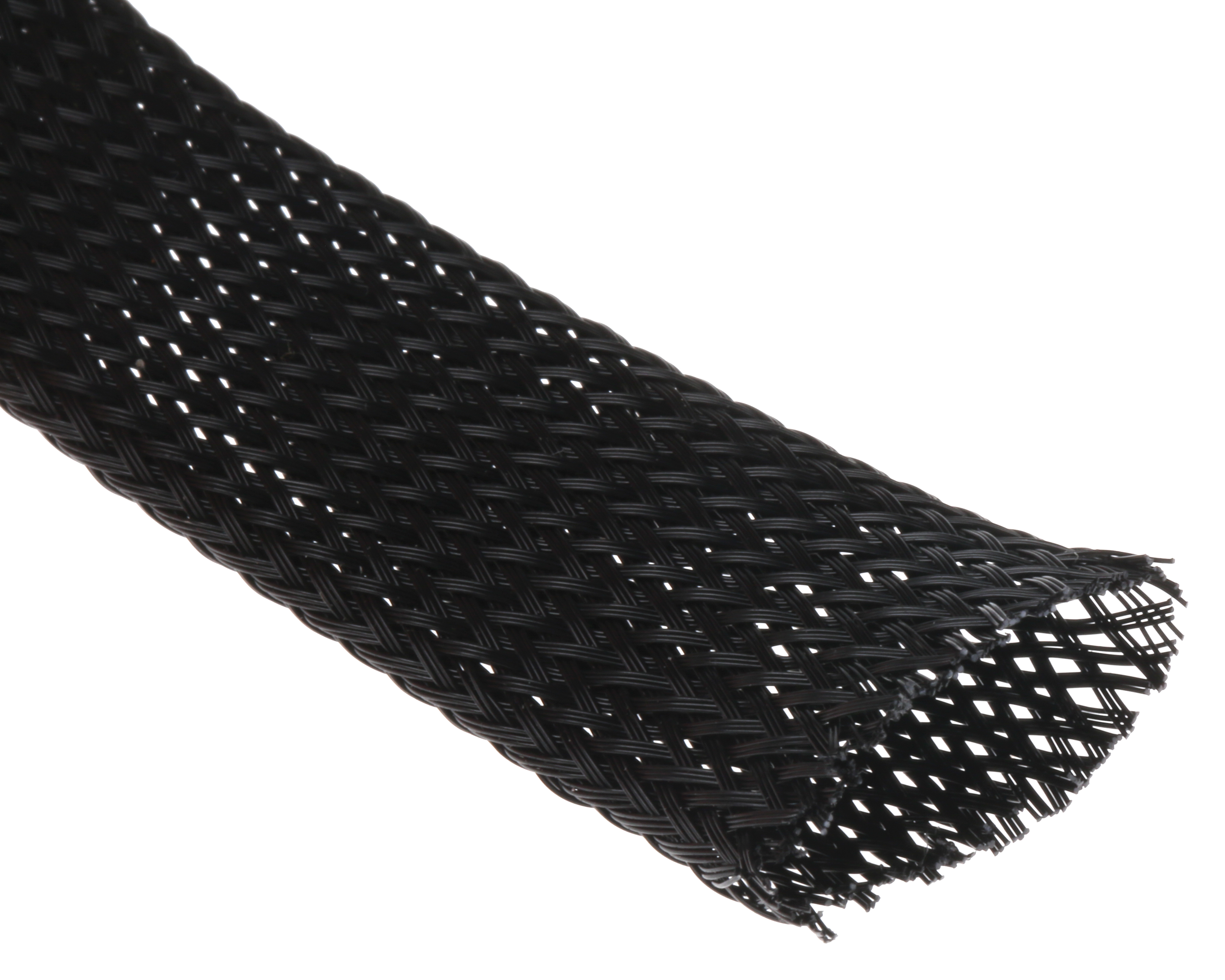 This is Expandable Braided PET Black Cable Sleeve 19mm 30m manufactured by RS Pro. The manufacturer part number is 408-299. The product complies with all safety standards, such as rohs compliant, ul 1441. It has a 19mm diameter. It has a decent black colour. The product is made from highly stable and reliable pet. The minimum cable diameter is 12.7mm. Whereas, the minimum operating temperature of the product is -40°c. While the maximum dimeter of the cable is 31.7mm. The sleeve has a 30m length. Expandable Options - yes. It has a maximum operating temperature of +125°c. It is braided yes .