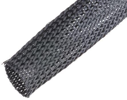 This is Expandable Braided PET Black Cable Sleeve 19mm 25m manufactured by SES. The manufacturer part number is 06240009010. The minimum cable diameter is 19mm. It has a 19mm diameter. It has a decent black colour. The product is made from highly stable and reliable pet. Whereas, the minimum operating temperature of the product is -50°c. While the maximum dimeter of the cable is 32mm. The sleeve has a 25m length. Expandable Options - yes. It has a maximum operating temperature of +130°c. It is braided yes .