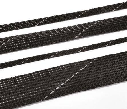 This is Braided PBT Black with White Cable Sleeve 8mm 400m manufactured by HellermannTyton. The manufacturer part number is 170-30814. The minimum cable diameter is 7mm. It has a 8mm diameter. It has a decent black with white colour. The product is made from highly stable and reliable pbt. Whereas, the minimum operating temperature of the product is -50°c. While the maximum dimeter of the cable is 13mm. The sleeve has a 400m length. It has a maximum operating temperature of +150°c. It is braided yes .
