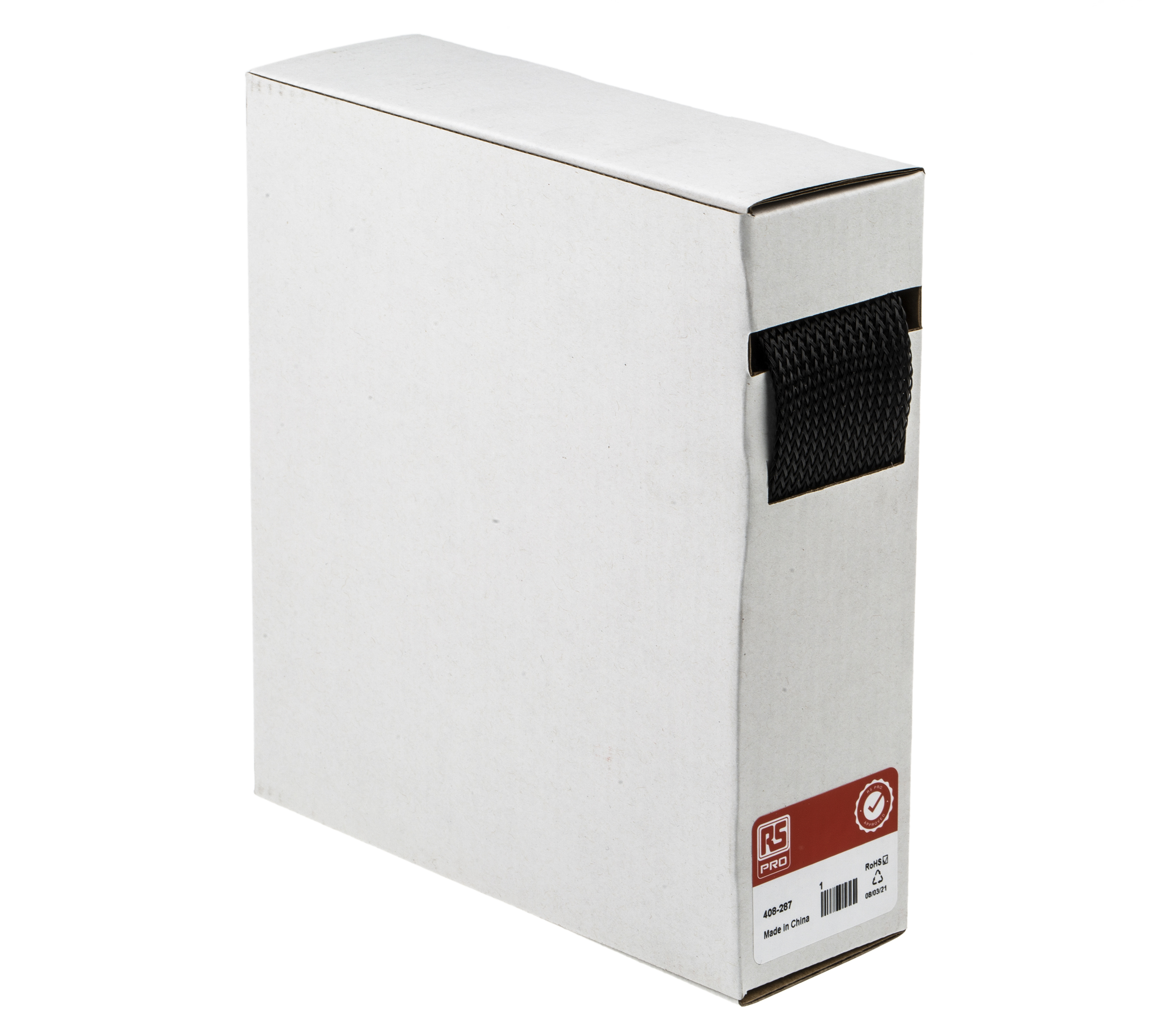 This is Expandable Braided PET Black Cable Sleeve 40mm 10m manufactured by RS Pro. The manufacturer part number is 408-287. The product complies with all safety standards, such as rohs compliant, ul 1441. It has a 40mm diameter. It has a decent black colour. The product is made from highly stable and reliable pet. The minimum cable diameter is 18mm. Whereas, the minimum operating temperature of the product is -40°c. While the maximum dimeter of the cable is 54mm. The sleeve has a 10m length. Expandable Options - yes. It has a maximum operating temperature of +125°c. It is braided yes .