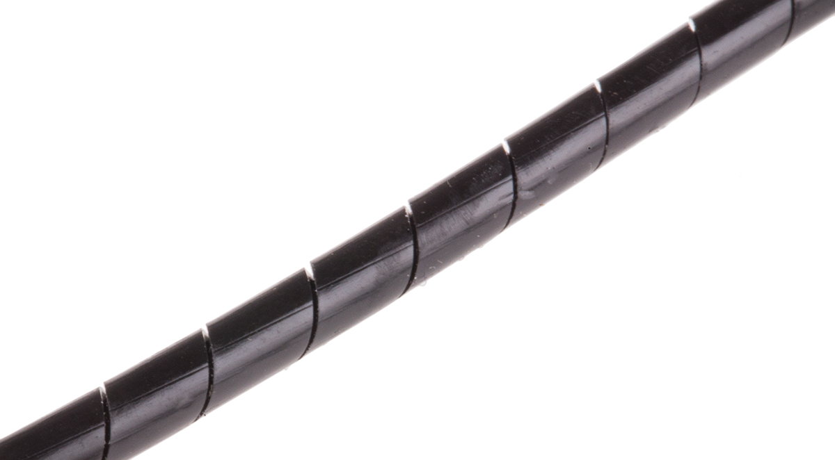 This is Spiral Wrap 3.3mm 15mm Polyethylene manufactured by RS Pro. The manufacturer part number is 811-7651. The minimum cable diameter is 4mm. It has a decent black colour. The product is made from highly stable and reliable polyethylene. The bundle has a maximum diameter of 15mm. Its accurate length is 30.5m. It has 0.6mm thick wall. Its internal diameter is about 4mm . While the maximum dimeter of the cable is 4.5mm.