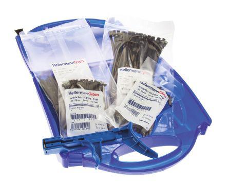This is Black Nylon 66 Cable Tie Assemblies 100 mm 150 mm 299 mm x 2.5 mm 3.5 mm 4.5 mm manufactured by HellermannTyton. The manufacturer part number is SMALL KIT BK. It has a cable tie of 2.5 mm, 3.5 mm, 4.5 mm in width . It has a decent black colour. The product is made from highly stable and reliable nylon 66. Additionally, the cable tie length is about 100 mm, 150 mm, 299 mm . Whereas, the minimum operating temperature of the product is -55°c. It has a maximum operating temperature of +100°c.