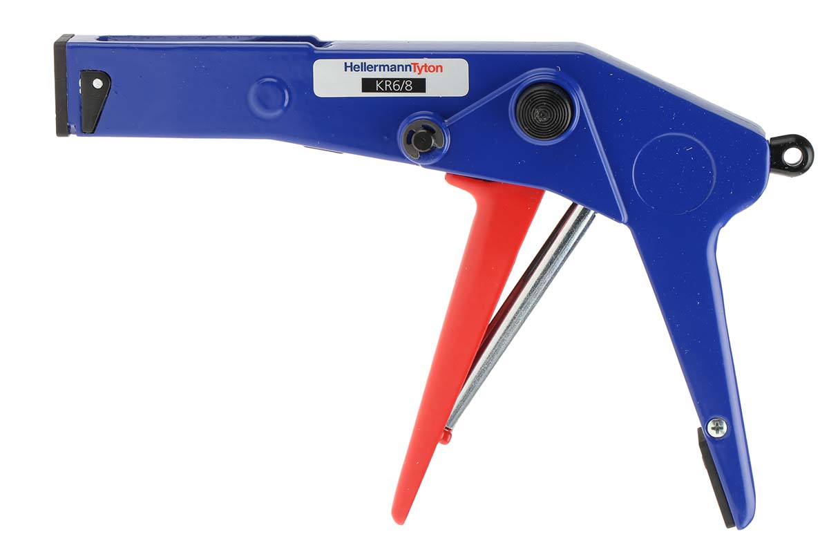 This is KR6/8 Cable Tie Gun 8 mm Capacity manufactured by HellermannTyton. The manufacturer part number is 121-00680 KR6/8-BU/RD. The product kr, is a highly preferred choice for users. The product is made from highly stable and reliable metal. It has a cable tie of 8mm capacity . The typical product's weight is 520g.