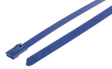 This is Blue Polyester Coated Stainless Steel Roller Ball Cable Tie 200mm x 7.9 mm manufactured by RS Pro. The manufacturer part number is 743-6295. The product has a flame retardant, halogen free fire behaviour. The product complies with all safety standards, such as rohs compliant. It has a maximum operating temperature of +150°c. It has a decent blue colour. The product is made from highly stable and reliable polyester coated stainless steel. The product has an added tensile strength of 539n. Furthermore, the product is 7.9 mm wide. Its accurate length is 200 mm. Whereas, the minimum operating temperature of the product is -80°c. The bundle has a maximum diameter of 50mm. It comes in roller ball configuration. Available in 100 quantity.