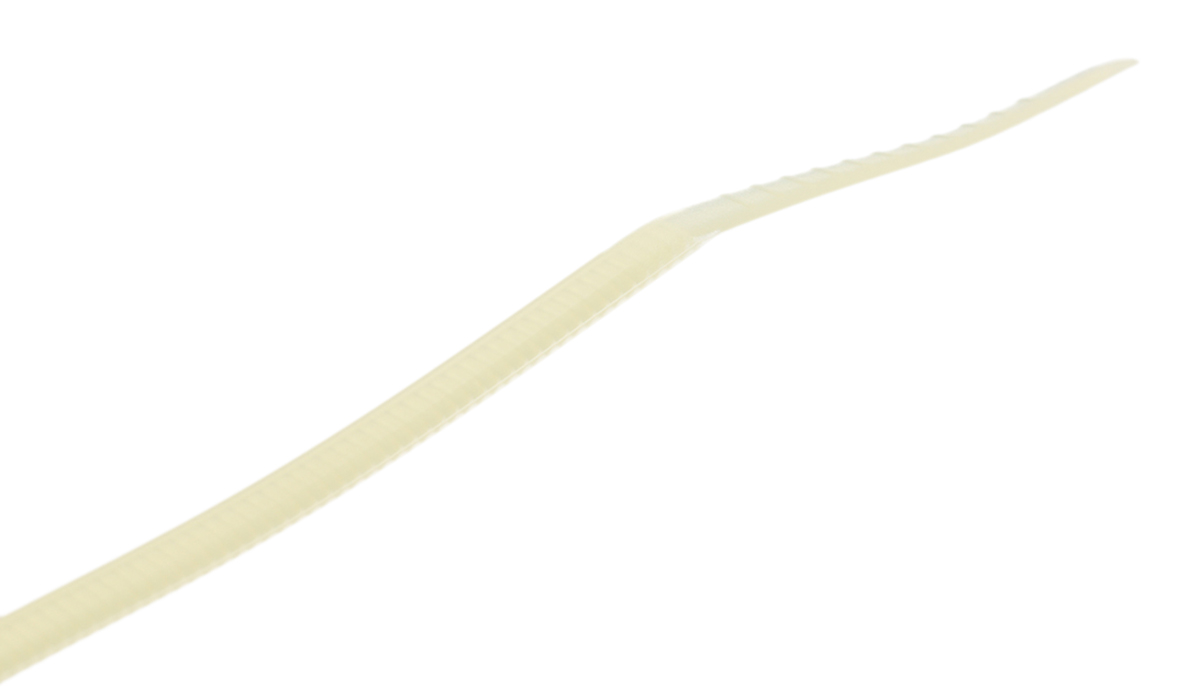 This is Natural Nylon Heat Stabilised Cable Tie 100mm x 2.5 mm manufactured by RS Pro. The manufacturer part number is 811-1628. The product has a flame retardant fire behaviour. Whereas, the minimum operating temperature of the product is -40°c. It has a maximum operating temperature of +105°c. It has a decent natural colour. The product is made from highly stable and reliable nylon 66. The product has an added tensile strength of 78.4n. It has a UV resistant feature no . Furthermore, the product is 2.5 mm wide. Its accurate length is 100mm. The bundle has a maximum diameter of 22mm. It comes in heat stabilised configuration. Available in 100 quantity.