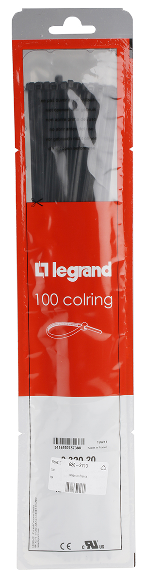 This is Black Nylon Cable Tie 360mm x 3.5 mm Colring Series manufactured by Legrand. The manufacturer part number is 0 320 20. The product has a halogen free fire behaviour. The product colring, is a highly preferred choice for users. It has a decent black colour. The product is made from highly stable and reliable nylon 66. The product has an added tensile strength of 130n. It has a UV resistant feature yes . Furthermore, the product is 3.5 mm wide. Its accurate length is 360mm. Whereas, the minimum operating temperature of the product is -40°c. The bundle has a maximum diameter of 102mm. It has a maximum operating temperature of +105°c. It comes in non-releasable configuration. Available in 100 quantity.