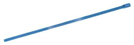 This is Blue Polyester Coated Stainless Steel Roller Ball Cable Tie 200mm x 4.6 mm manufactured by RS Pro. The manufacturer part number is 743-6291. The product has a flame retardant, halogen free fire behaviour. The product complies with all safety standards, such as rohs compliant. It has a maximum operating temperature of +150°c. It has a decent blue colour. The product is made from highly stable and reliable polyester coated stainless steel. The product has an added tensile strength of 436.1n. Furthermore, the product is 4.6 mm wide. Its accurate length is 200 mm. Whereas, the minimum operating temperature of the product is -80°c. The bundle has a maximum diameter of 50mm. It comes in roller ball configuration. Available in 100 quantity.