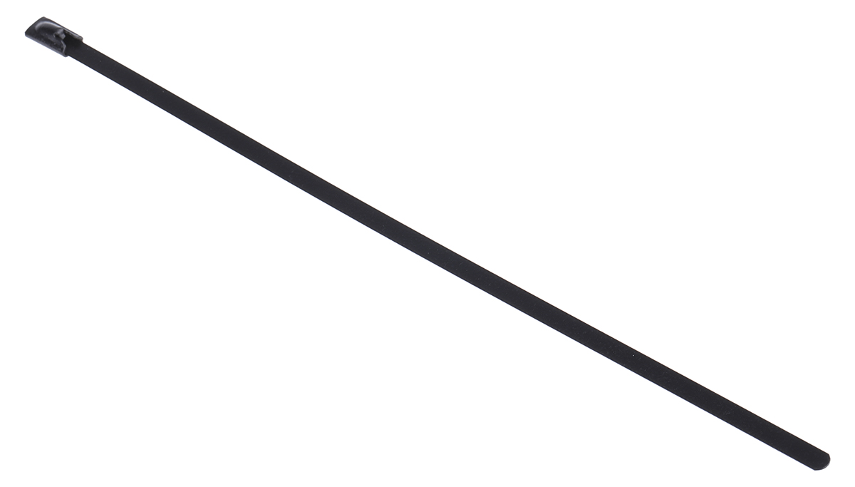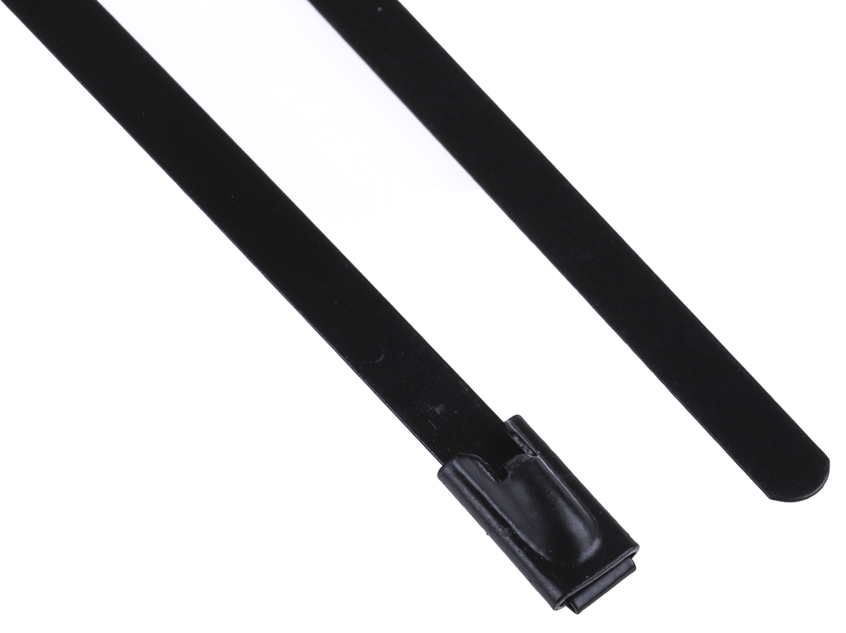 This is Black Polyester Coated Stainless Steel Roller Ball Cable Tie 200mm x 4.6 mm manufactured by RS Pro. The manufacturer part number is 547-4327. The product has a flame retardant, halogen free fire behaviour. It has a maximum operating temperature of +150°c. It has a decent black colour. The product is made from highly stable and reliable polyester coated stainless steel. The product has an added tensile strength of 436.1n. Furthermore, the product is 4.6 mm wide. Its accurate length is 200mm. Whereas, the minimum operating temperature of the product is -80°c. The bundle has a maximum diameter of 50mm. It comes in roller ball configuration. Available in 100 quantity.