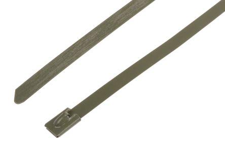 This is Green Polyester Coated Stainless Steel Roller Ball Cable Tie 200mm x 7.9 mm manufactured by RS Pro. The manufacturer part number is 743-6279. The product has a flame retardant, halogen free fire behaviour. It has a maximum operating temperature of +150°c. It has a decent green colour. The product is made from highly stable and reliable polyester coated stainless steel. The product has an added tensile strength of 539n. Furthermore, the product is 7.9 mm wide. Its accurate length is 200 mm. Whereas, the minimum operating temperature of the product is -80°c. The bundle has a maximum diameter of 50mm. It comes in roller ball configuration. Available in 100 quantity.