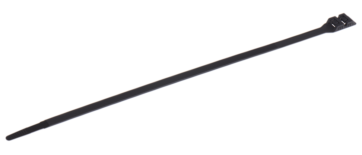 This is Black Nylon Double Locking Cable Tie Cable Tie 360mm x 9 mm DK Series manufactured by RS Pro. The manufacturer part number is 865-9647. The product has a flame retardant fire behaviour. Whereas, the minimum operating temperature of the product is -40°c. The product dk, is a highly preferred choice for users. It has a decent black colour. The product is made from highly stable and reliable nylon 66. The product has an added tensile strength of 55kg. It has a UV resistant feature no . Furthermore, the product is 9 mm wide. Its accurate length is 360mm. The bundle has a maximum diameter of 95mm. It has a maximum operating temperature of +85°c. It comes in double locking configuration. Available in 100 quantity.