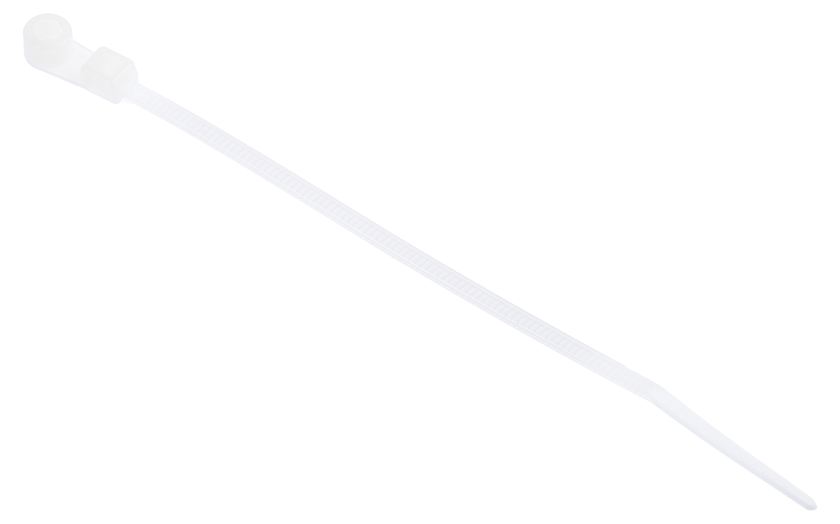 This is Natural Nylon Screw Mount Cable Tie 113mm x 2.5 mm manufactured by RS Pro. The manufacturer part number is 601-079. The product has a flame retardant fire behaviour. Whereas, the minimum operating temperature of the product is -40°c. It has a maximum operating temperature of +85°c. It has a decent natural colour. The product is made from highly stable and reliable nylon 66. The product has an added tensile strength of 78.4n. It has a UV resistant feature no . Furthermore, the product is 2.5 mm wide. Its accurate length is 113mm. The bundle has a maximum diameter of 25mm. It comes in screw mount configuration. Available in 100 quantity.